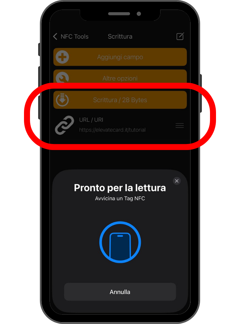 ed avvicina la tua Elevat Card al lettore NFC.